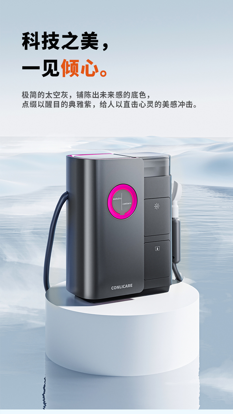 市麵上的兒童電動牙刷,僅僅隻是成人牙刷的縮小版,寶寶抗拒、操作複雜,寶爸寶媽監督費時費力。95後創業團隊CONLICARE攜手鼎典創造體,用科技+設計挖掘未來兒童刷牙新方式,革新刷牙黑科技,康立可-兒童刷牙機器人是以全新抽真空技術,模擬巴氏刷牙法,紫外線殺菌,廢水回收處理係統等突破優勢定義兒童刷牙機器人,告別手動清潔,一放,一按,開啟一鍵式全自動潔牙SPA.