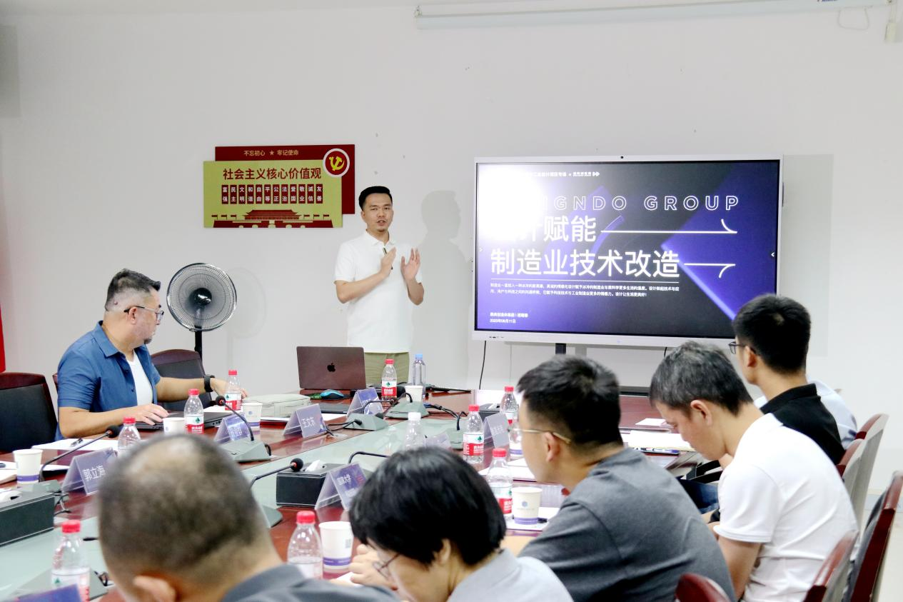 鼎典創造體集團受邀出席本次活動,聯寶(合肥)電子科技有限公司設計總監王文東和鼎典創造體集團副總裁兼合肥總經理招理春分別在活動帶來《設計賦能產業高質量發展》和《設計賦能製造業技術改造》的主題分享。