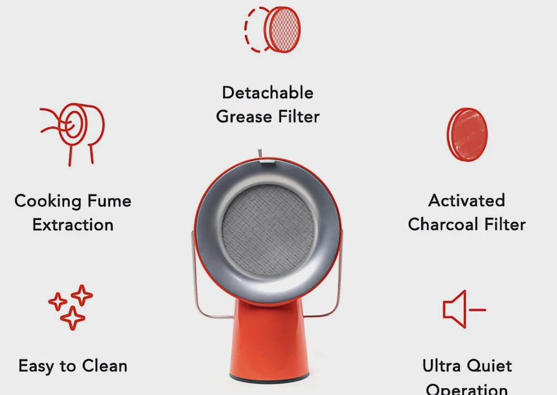 buxiangyibandechouyouyanji,bushimeigechufangdouyou,nikeyibatafangzairenhexuyaodedifang,xiruyanwuhekongqizhongdezhifang。ruguoninxuanzewuxianxuanxiang,ninshenzhikeyiyuanlidianyuanchazuo。xiaoqiao、方便、安全,令人驚訝的是,直到現在還沒有人想到像AirHood便攜式抽油煙機這樣的東西。有線套裝的價格為109美元,無線套裝的價格為129美元,AirHood可以輕鬆快速地收回成本,讓您安心,確保您可以開始烹飪最健康、最美味的菜肴,再也不用擔心油和氣味了。