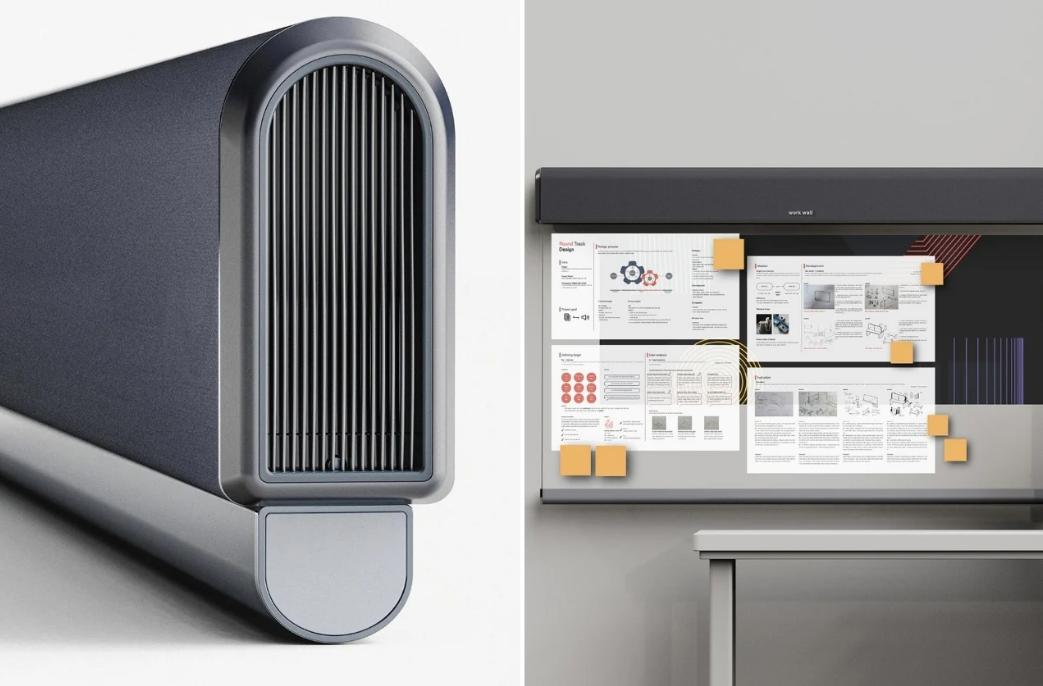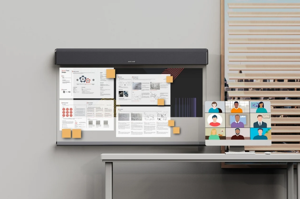 屏幕本身可以讓你寫下你的想法、任ren務wu或huo頭tou腦nao風feng暴bao的de想xiang法fa。你ni可ke以yi自zi己ji使shi用yong,也ye可ke以yi在zai虛xu擬ni會hui議yi中zhong使shi用yong,你ni可ke以yi與yu你ni的de隊dui友you或huo同tong學xue分fen享xiang。該gai設she備bei的de掃sao描miao儀yi功gong能neng將jiang自zi動dong以yi數shu字zi方fang式shi傳chuan輸shu,並bing與yu您nin需xu要yao共gong享xiang的de任ren何he人ren共gong享xiang。所suo以yi基ji本ben上shang,工gong作zuo牆qiang是shi一yi個ge真zhen正zheng的de白bai板ban(不是真正的白色),它可以變成一個數字板。從渲染圖看不出你是否能在上麵投射東西,但既然這是產品描述中提到的東西之一,那麼我們假設它能。